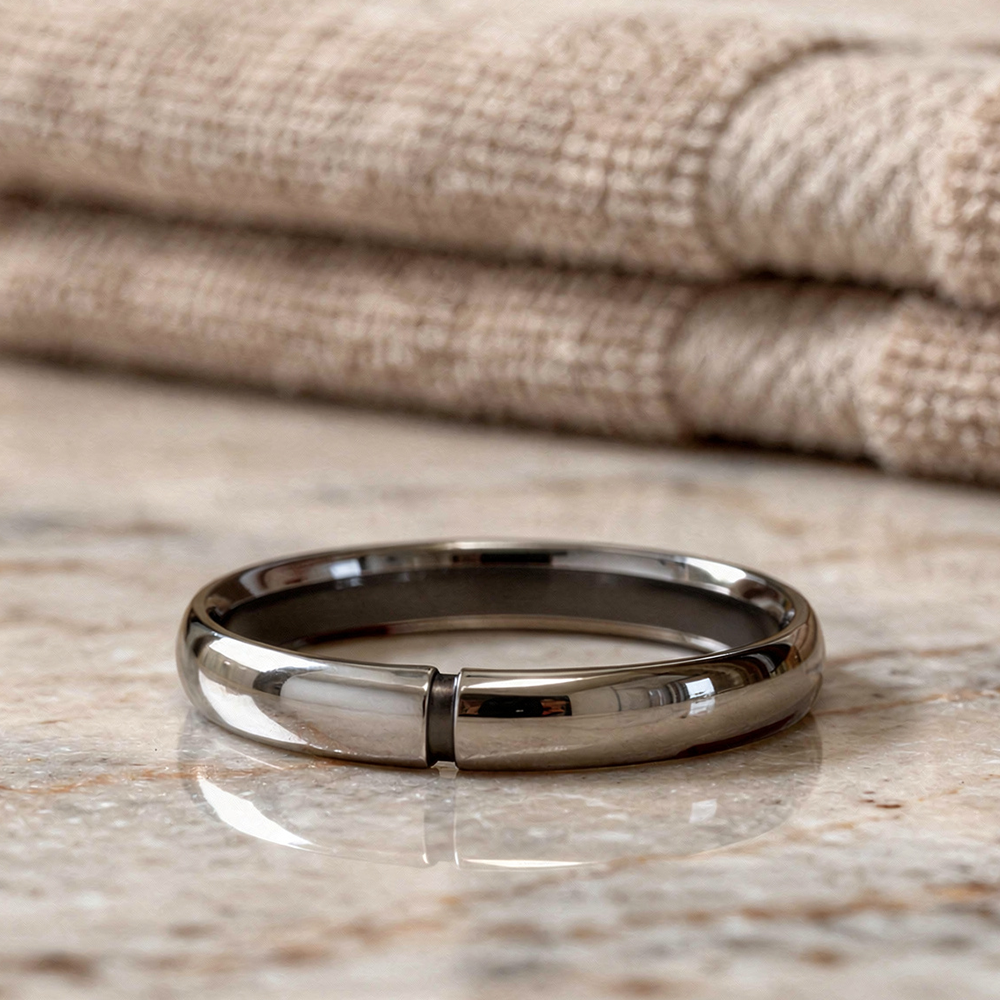 لا يُنصح بالسباحة أثناء ارتداء المجوهرات سواء في البحر أو المسبح، فالمِلْح والكلور قد يضرّان بلون بالخاتم.